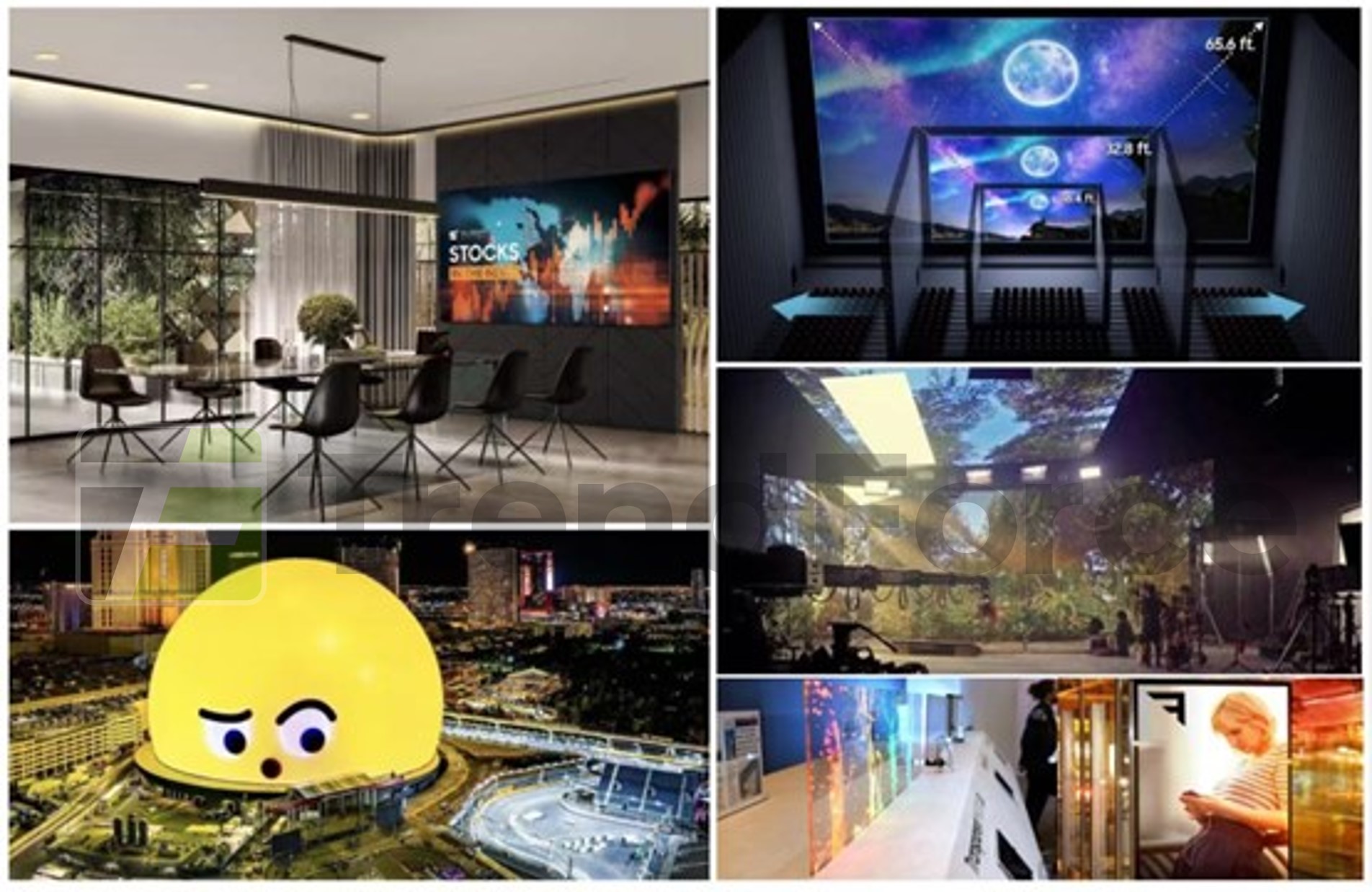 Starting in 2025, the specifications of mainstream products will change back to a 16:9 aspect ratio, with the 135-inch 2K P1.5 LED all-in-one display becoming the primary offering. This new generation of all-in-one displays will feature a foldable design for easier transportation, thus helping businesses reduce their total cost of ownership. According to TrendForce, COB technology can enhance color uniformity, contrast, and viewing angles. These benefits encourage suppliers including Samsung, Unilumin, Absen, ViewSonic, Philips, and CVTE to adopt the technology. TrendForce’s analysis indicates that the market share of COB technology will remain between 25-30% from 2024 to 2025. Furthermore, starting in 2025, LED display suppliers are going to actively promote 162-163 inch 4K P0.9 all-in-one LED displays for high-end commercial applications and home theaters.